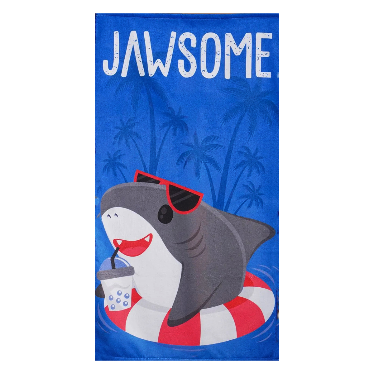 Toalha de Praia KazzaVip Microfibra 100% Poliéster Estampada Anti Areia Shark Jawsome 60cm x 110m Azul
