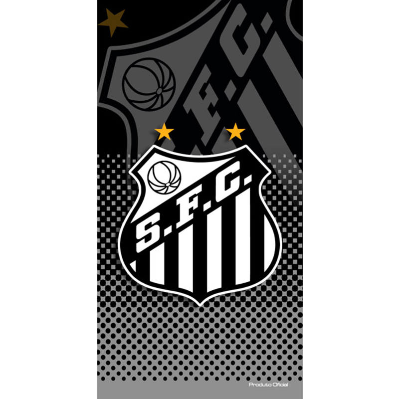 Toalha Praia Buettner Veludo Brasão Santos 70cm x 140m Preta
