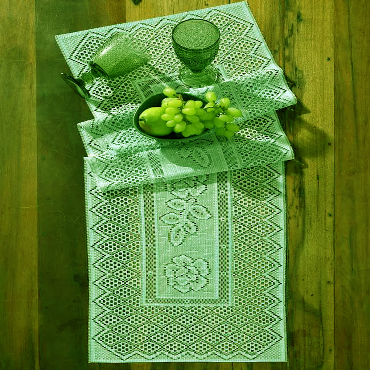 Trilho de Mesa Interlar Renda 100% Poliéster Color 40cm x 150cm Pistache