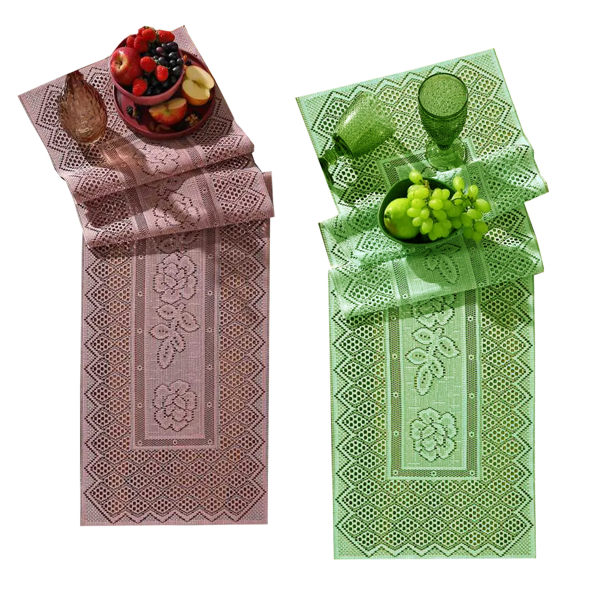 Trilho Caminho para Mesa Interlar Renda 100% Poliéster Color 40cm x 150cm ( 02 Unidades )Rose e Pistache
